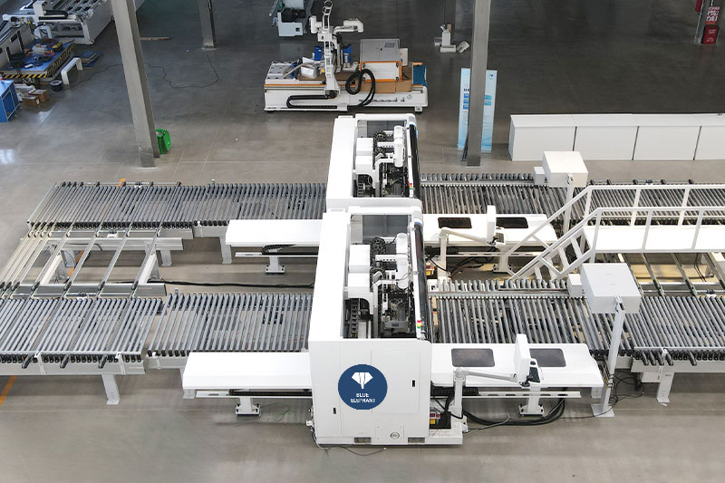 六面鉆雙機(jī)連線由兩臺(tái)數(shù)控六面鉆、定位機(jī)構(gòu)、高清讀碼器、自動(dòng)輸送線及智能化控制系統(tǒng)組成,可與封邊機(jī)、開(kāi)料設(shè)備組成自動(dòng)化生產(chǎn)線。