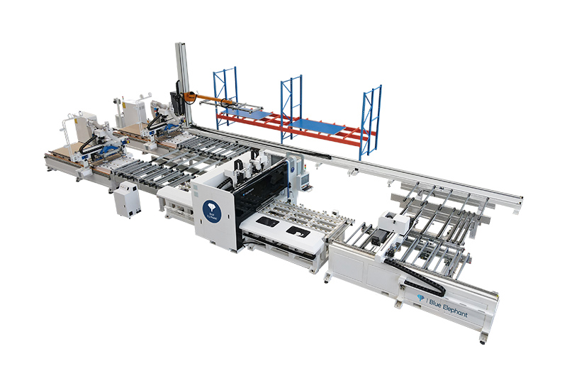 一拖二貼標鉆切生產(chǎn)線可一次性完成自動貼標、開料、鉆孔,生產(chǎn)線簡化了工序,減少了生產(chǎn)過程中板材的移動和搬運,節(jié)省了人力,減少了板材的損壞。
